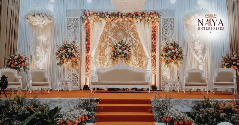 Flowers can provide a natural look, uniformity, and infinity in terms of design. Artificial flower stage decoration, when obtained through the assistance of a reputable supplier of wedding decoration materials such as Naya Enterprises, assists professionals in designing visually appealing and durable wedding stages for any kind of celebration.